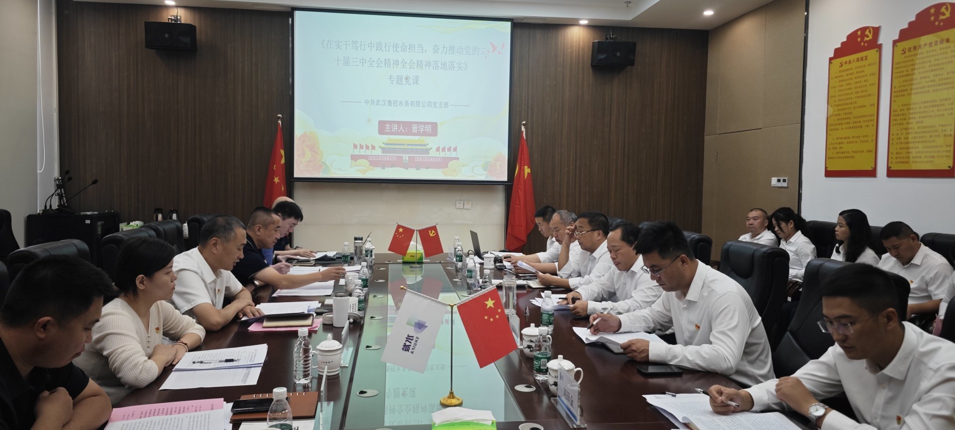 10月17日,水發(fā)水控集團(tuán)黨委副書(shū)記、副總經(jīng)理(主持經(jīng)理層工作)晉學(xué)明到武漢魯控講授專(zhuān)題黨課。