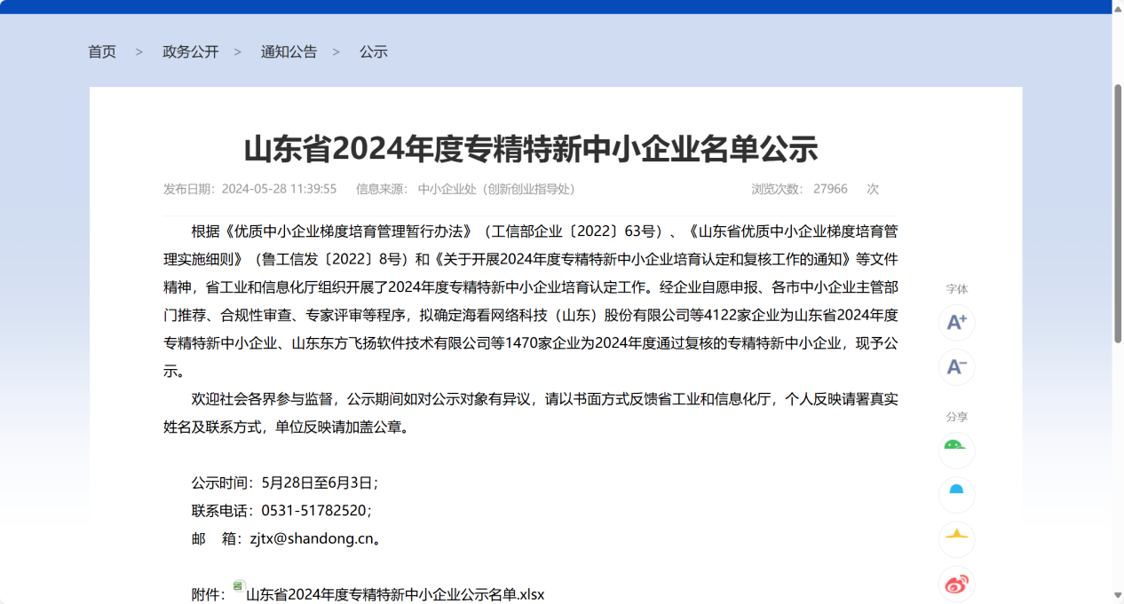近日,山東省工業(yè)和信息化廳公示了山東省2024年度專精特新中小企業(yè)名單。經自評申報、市級審核推薦、省級專家評審等程序,山東水發(fā)黃水東調工程有限公司進入公示名單,順利通過山東省2024年度專精特新中小企業(yè)認定。