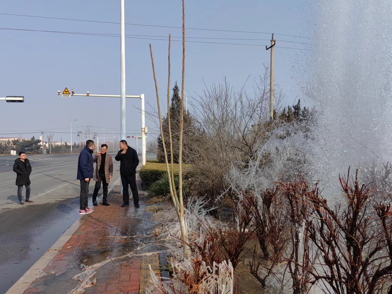 甲辰龍年大年初一早7點(diǎn),正當(dāng)大家沉浸在濃厚的春節(jié)節(jié)日氣氛中,濰坊供水集團(tuán)值班熱線接到群眾報修電話,發(fā)現(xiàn)供水管道疑似破裂漏水,附近200多家企業(yè)和1000多戶居民用水受到嚴(yán)重影響,供水集團(tuán)立即啟動供水突發(fā)事件應(yīng)急預(yù)案,值班領(lǐng)導(dǎo)張明興、杜鑫組織客戶服務(wù)部、工程管理部、惠澤水廠等維修工作人員組成搶修隊,第一時間趕赴現(xiàn)場,根據(jù)現(xiàn)場情況制定搶修方案,全力展開管道搶修。
